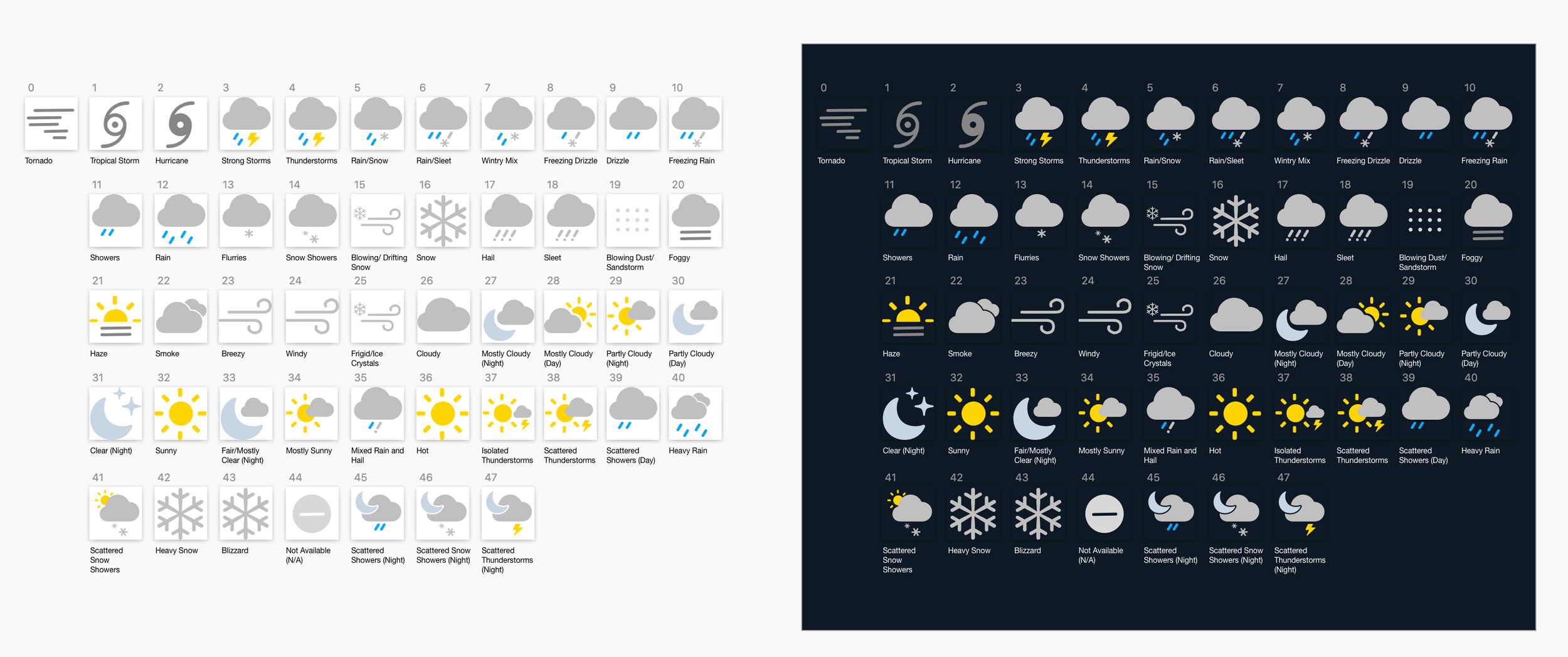 The design for this feature needed to work for both light and dark modes. Once the direction was approved for the overall layout and user flow for the 10-Day weather section, I laid out the additional screens where the weather would display.