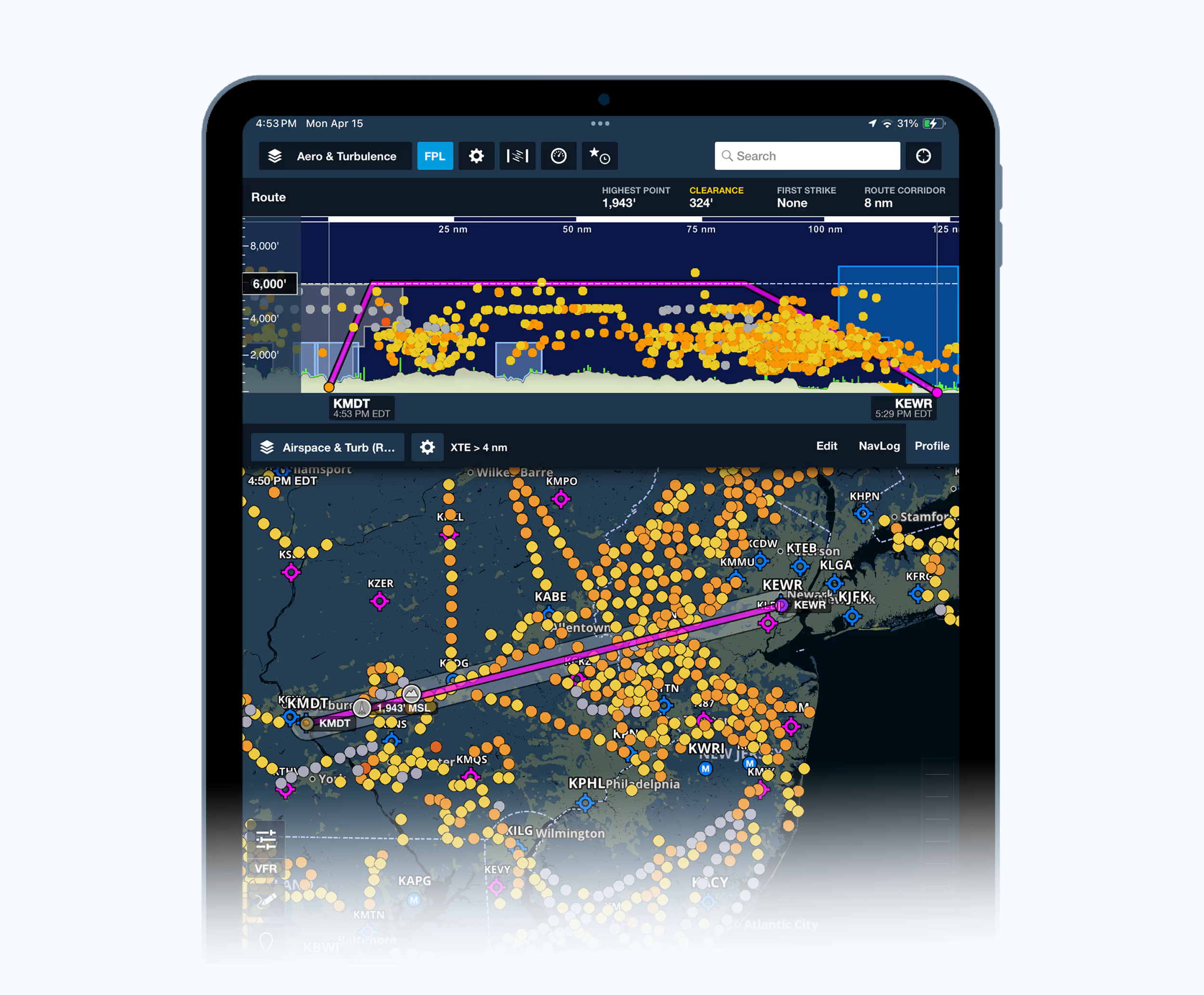 Aviation safety feature for Jeppeson ForeFlight