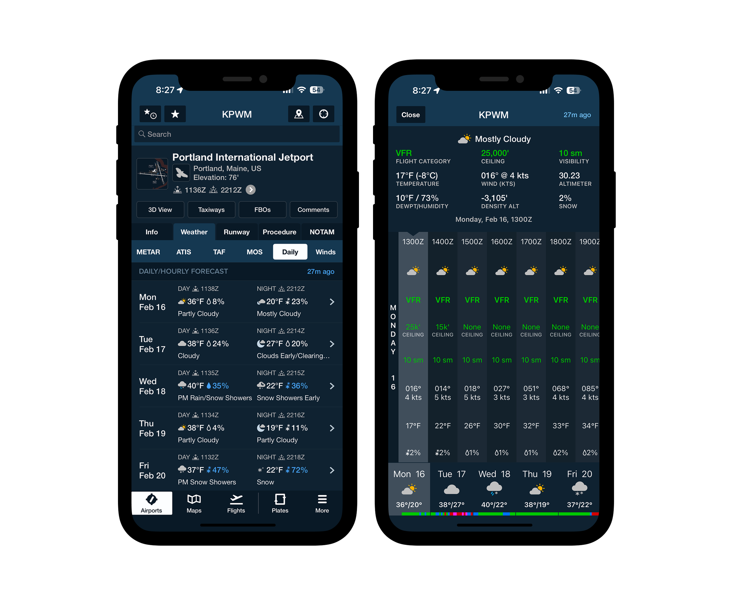 Users can now access Daily Forecasts in several ways - from the Daily tab in the Airport Weather view, which provides a tappable summary of each day’s forecast; from the Add to Route popup; from the Nearby Airports list, which shows the forecast for their current location; and from ForeFlight’s Quick Actions list which provides an even faster shortcut to view your local forecast.