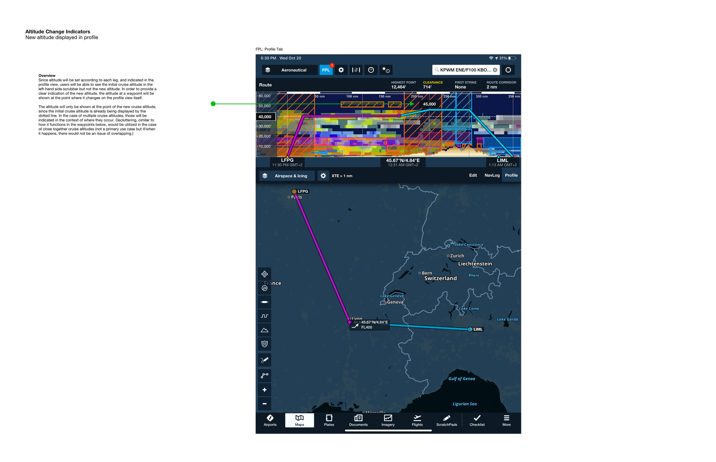 This feature allows pilots to visualize and plan enroute altitude changes at key waypoints to avoid terrain, weather, and airspace.